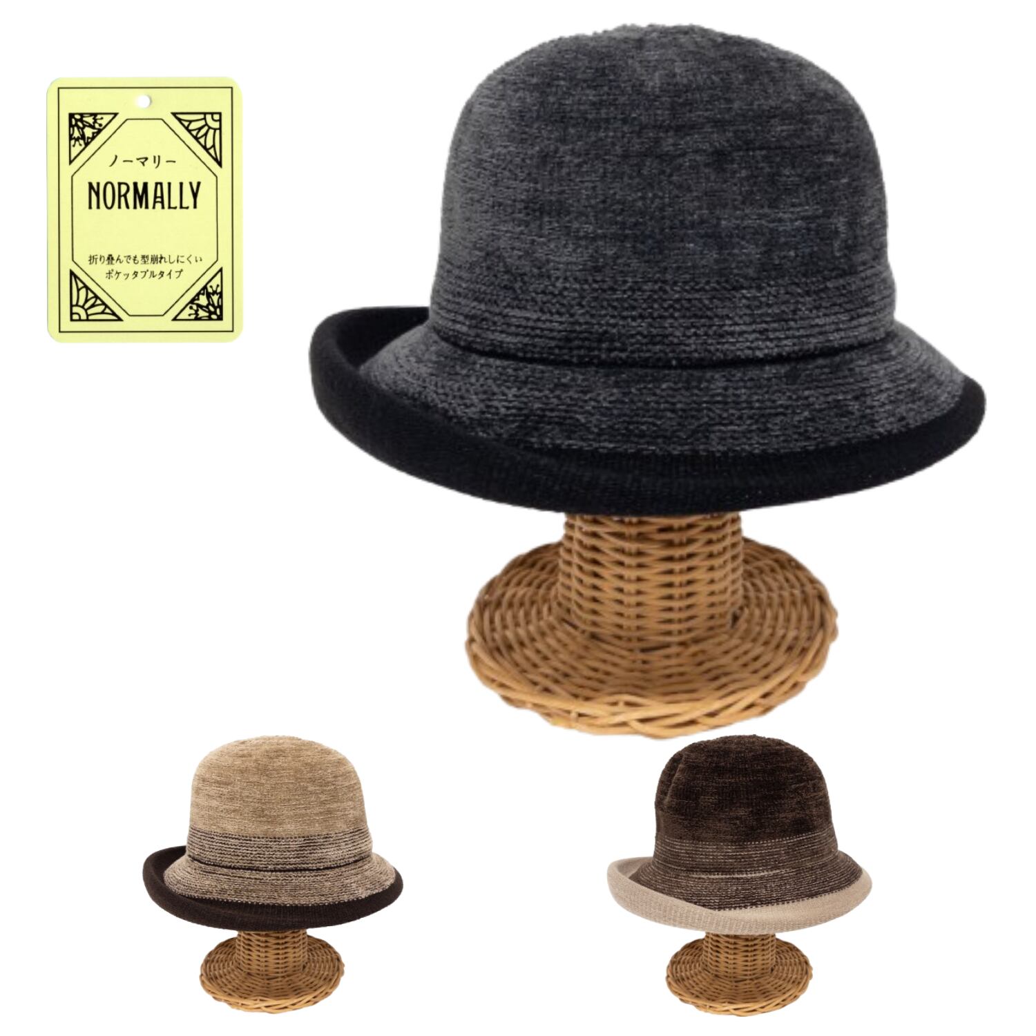 ポリエステル、レーヨン、アクリルをブレンドした暖かみのある柔らかな素材を、熱で成型するサーモ加工で仕上げたハットです。