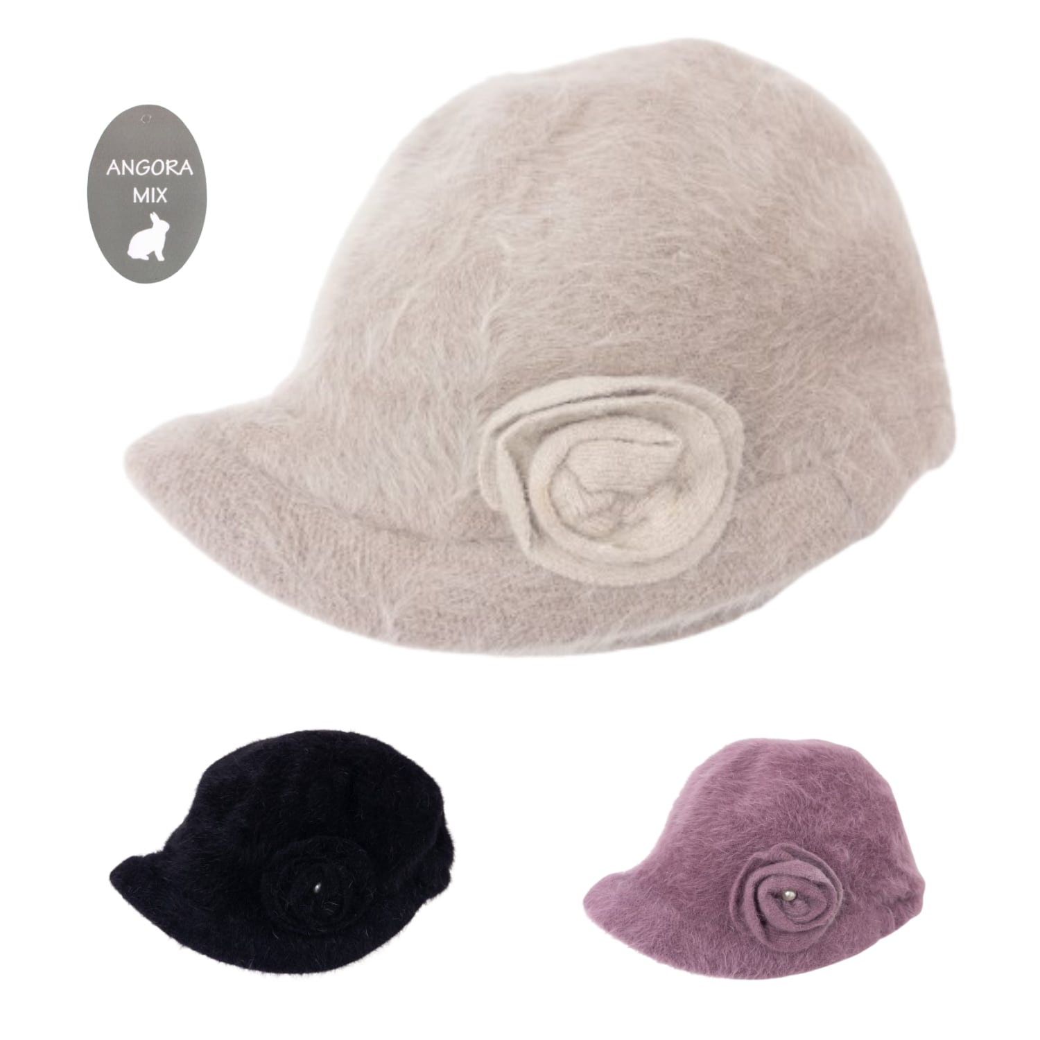 AG-03 秋冬 アンゴラ混 お花モチーフ 立体フラワー シンプル ミセス 上品 防寒 暖かい