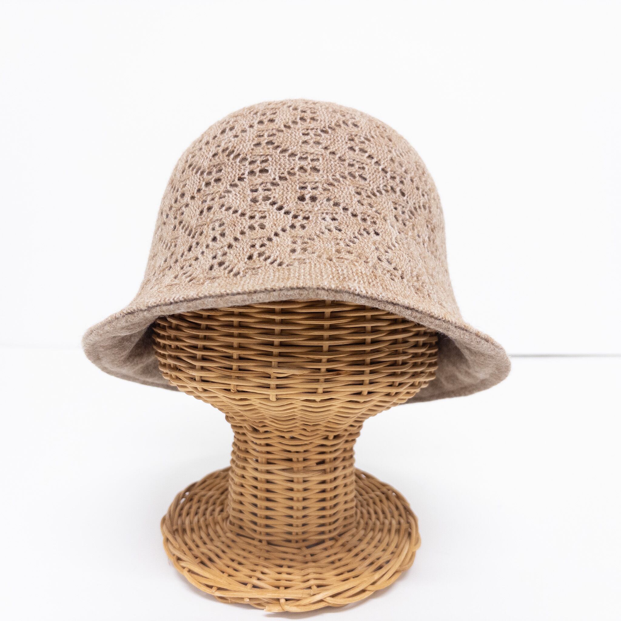 KR-709 ウール 混2WAY クロッシェハット レース編み リバーシブル あったか フリーサイズ