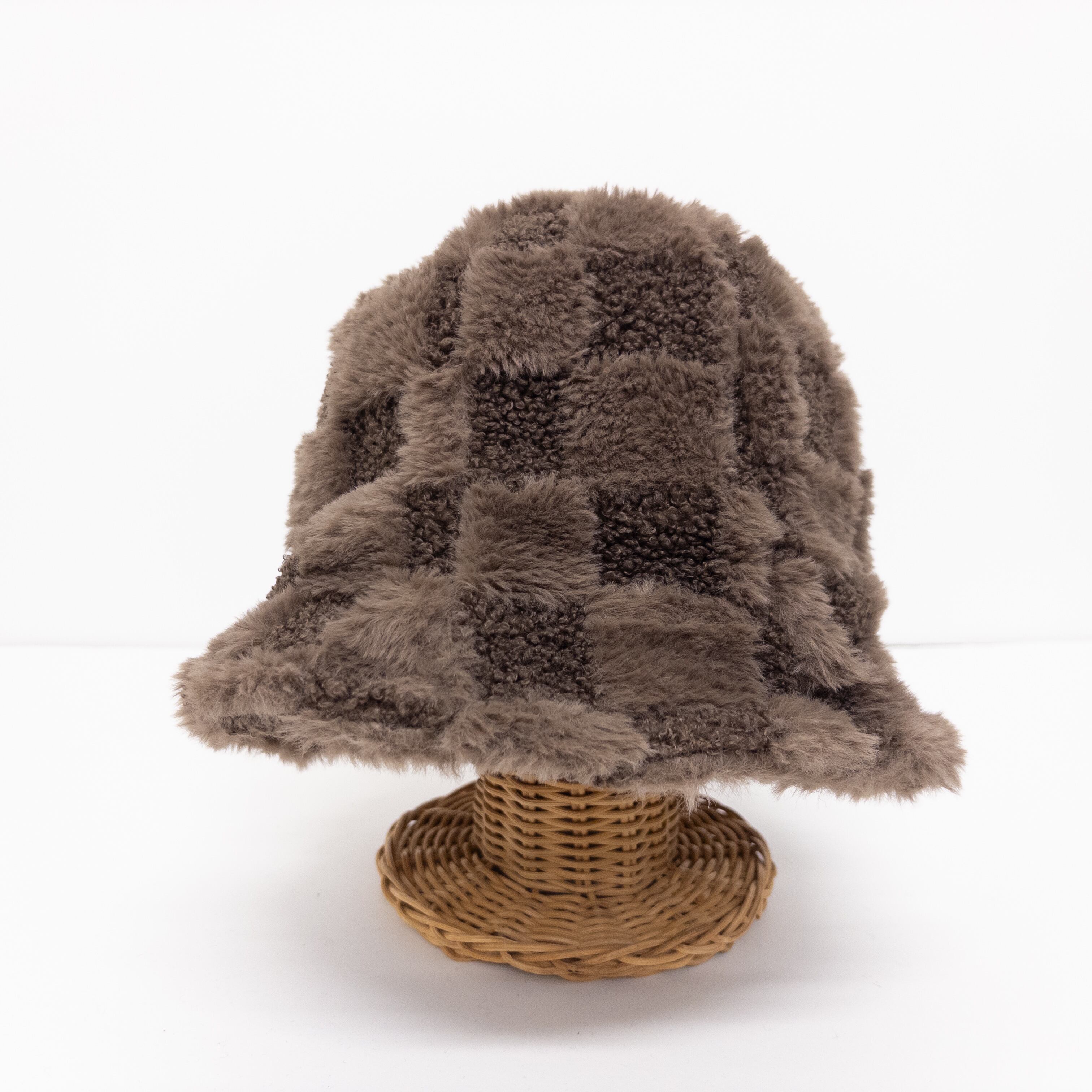 長毛と短毛のコントラストが効いた立体的な市松柄が、コーディネートに遊び心をプラスします。