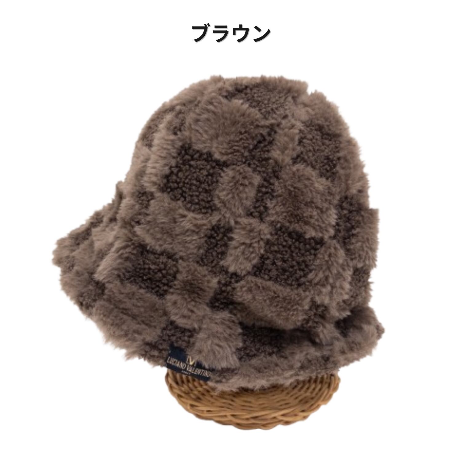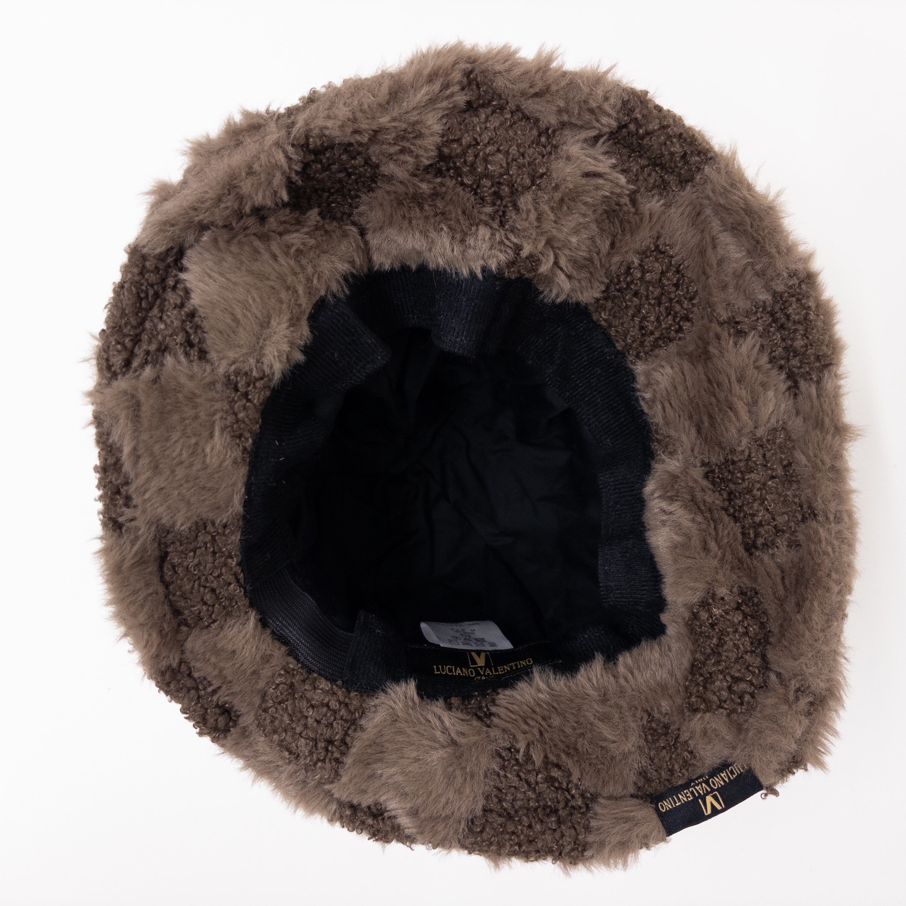 CAS-872 LUCIANO VALENTINO モコモコ ファー 市松柄 チェック キャスケット 秋冬 レディース トレンド カジュアル